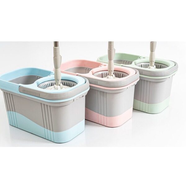 نوع نخ استفاده شده در این محصول از جنس میکروفایبر می باشد که قابلیت جذب فوق العاده آب ( تا ۷ برابر وزن خود) و قدرت پاک کنندگی بالایی دارد و برای شستشو نیاز به ماده شوینده شیمیایی نداشته و با آب رابطه مثبتی دارد. سطل چرخشی از دو قسمت سبد آبگیر و مخزن آب تشکیل شده است. سبد از جنس پلاستیک مقاوم بوده که در مقایسه با سبد های فلزی محیط، نامناسب تری برای زنده ماندن و تکثیر ویروس ها و آلودگی می باشد. یک عدد دسته، یک عدد یدک نخ میکروفایبر پاک کننده و یک عدد کفی جزو متعلقات بسته بندی این زمین شوی هستند.
