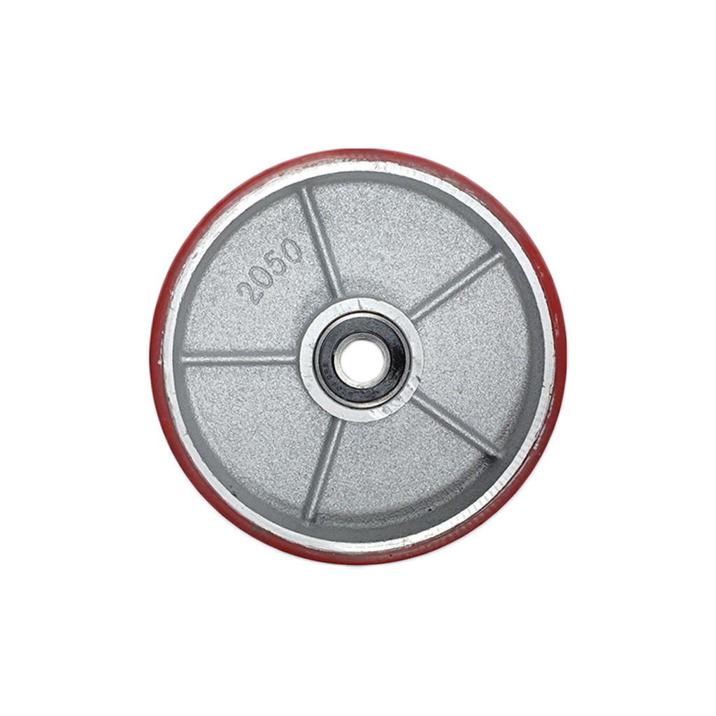 چرخ عقب جک پالت 20*50، از جنس پلی اورتان با کیفیت بسیار عالی که مقاومت بالایی برای تحمل فشار بار دارد.